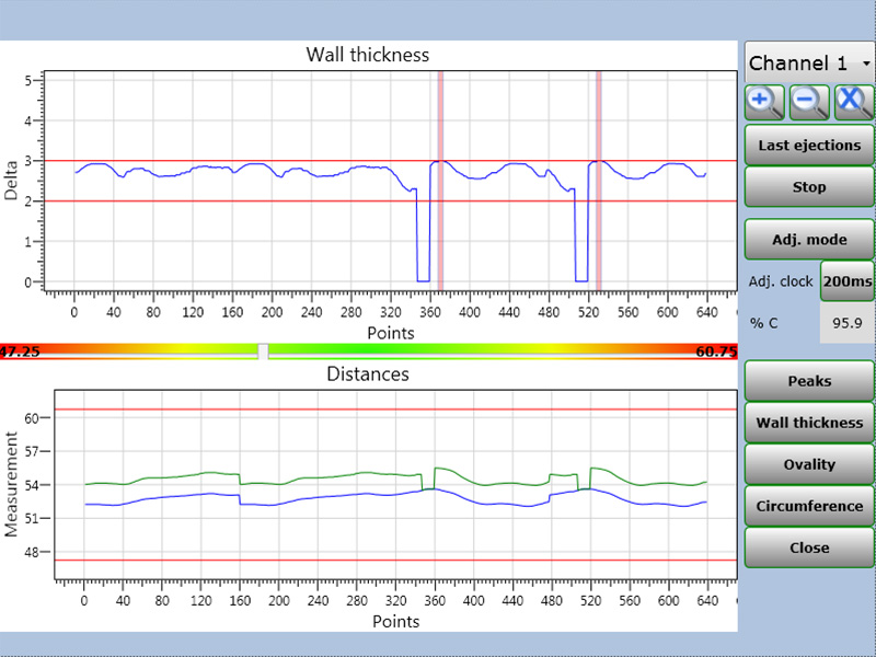 - Visualización gráfica continua del grosor de la pared, así como de la ovalidad, incluida la identificación de los defectos