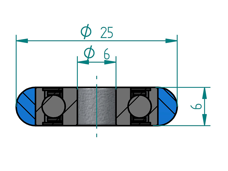 Número de artículo: 1012000700 Material polyurethane (PU), hardness approximately 90 ± 5 Shore A (all measurements are in mm)
