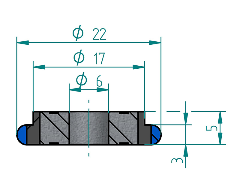 Número de artículo: 1012004300 Material polyurethane (PU), hardness approximately 90 ± 5 Shore A (all measurements are in mm)