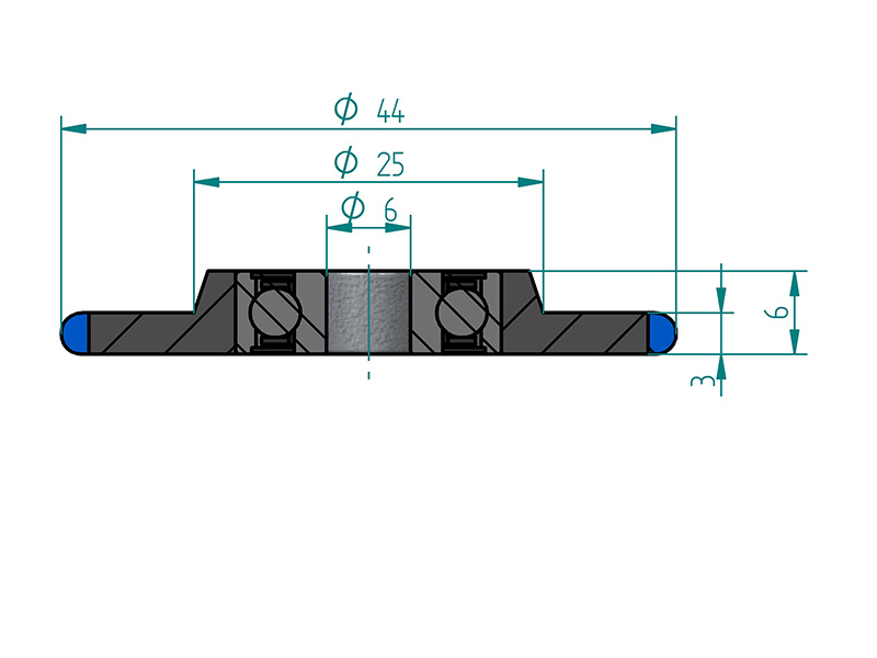 Número de artículo: 1012004600 Material polyurethane (PU), hardness approximately 90 ± 5 Shore A (all measurements are in mm)